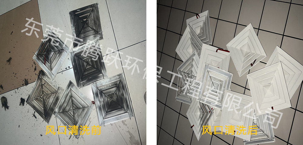 东莞市腾跃环保工程有限公司对阳江市大润发北环店空调末端全面清洗消毒。以下是我司技术人员在开工时拍摄并保留的清洗前后对比图: