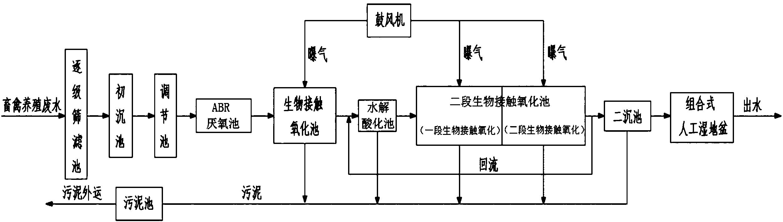 生物滤池、生物转盘、生物接触氧化法、序批式活性污泥法(SBR)、厌氧/好氧(A/O)及氧化沟法等。就处理效果来讲,接触氧化法和生物转盘的处理效果要好于活性污泥法,虽然生物滤池的处理效果也很好,但易于出现滤池堵塞现象。氧化沟、SBR和A/O工艺均属于改进的活性污泥法。氧化沟出水水质好、产生泥量少,也可对污水进行脱氮处理,但其处理的BOD负荷小、占地面积大、运行费用高。SBR法自动化控制程度高,能够对污水进行深度处理,但其缺点是BOD负荷较小,一次性投资也大。A/O体是一种兼有去除BOD和脱氮双重作用的活性污泥处理工艺,其投资虽然偏大,但经该法处理后的水易于达标排放。因此对于那些养殖规模大、废水产生量多且有较强经济能力的养殖场可选择A/O法,而对于中等规模的养殖场可选择接触氧化和生物转盘等好氧处理工艺。