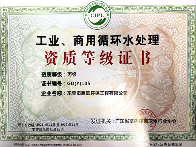 工业、商用循环水处理资质等级证书