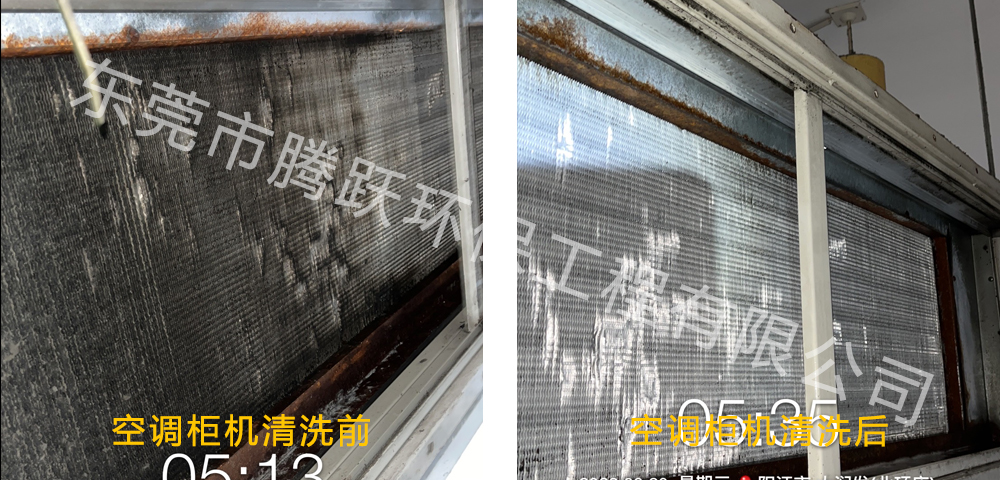 东莞市腾跃环保工程有限公司对阳江大润发北环店空调末端全面清洗消毒。共清洗了空调柜机14台,盘管机6台,风管7804.55平方米,以下是我司技术人员在开工时拍摄并保留的清洗前后对比图: